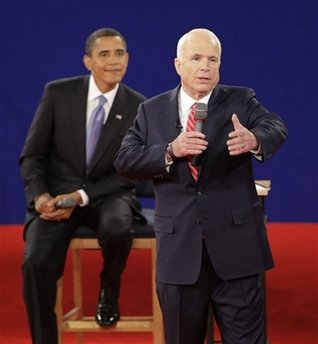 當遭麥凱恩指責時,奧巴馬耐心地等著麥凱恩講完,舒服地坐在椅子上,常常面帶笑容,似乎對麥凱恩的話感到驚奇。