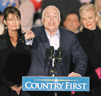 中新網(wǎng)10月24日電 美國(guó)總統(tǒng)選戰(zhàn)進(jìn)入最后沖刺階段,共和黨策士難以決定候選人麥凱恩該打什么牌以力挽狂瀾之際,麥凱恩22日痛批布什的不是,企圖挽回選民的心。據(jù)臺(tái)灣《聯(lián)合報(bào)》報(bào)道,這是選戰(zhàn)開(kāi)打以來(lái),麥凱恩對(duì)布什最嚴(yán)厲最直接的批判,試圖與布什劃清界線的用意非常明顯。