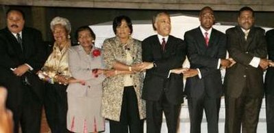 馬丁路德金的家人們?cè)诖筮x日晚聚集在馬丁路德金生前主禮的浸信會(huì)教堂前。
