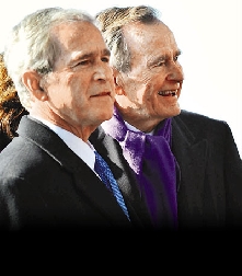 年屆84的老布什看來(lái)身體較差并不出奇,不過(guò)62歲的布什卻有著更多的白發(fā)和皺紋,令人吃驚。布什表示任內(nèi)一直得到父親無(wú)條件的支持:“你有一大堆人能給你意見(jiàn),但能拿起電話筒對(duì)你說(shuō):‘我愛(ài)你,兒子’、‘忍耐一下吧’,偶爾在需要時(shí)能安慰總統(tǒng)的人很罕有!