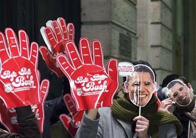 奧巴馬18日在林肯紀(jì)念堂五十萬(wàn)人出席的音樂會(huì)上,感謝出席人潮擁抱寒冷。音樂會(huì)開場(chǎng)兩小時(shí)后,奧巴馬與未來(lái)的第一夫人米歇爾出現(xiàn)在林肯紀(jì)念堂前,現(xiàn)場(chǎng)頓時(shí)沸騰。從林肯紀(jì)念堂到反思池,再到一公里外的華盛頓紀(jì)念方碑,人們一邊歡呼,一邊試圖用相機(jī)記錄下這歷史性的一刻。
