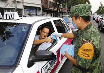 墨西哥城前日起口罩銷(xiāo)情突然暢旺,口罩迅即賣(mài)清,衛(wèi)生當(dāng)局則派員到國(guó)際機(jī)場(chǎng)、地鐵站和巴士站派發(fā)口罩。墨城當(dāng)局決定學(xué)校停課,610萬(wàn)學(xué)生留家。市內(nèi)一切由國(guó)家和市政府舉辦的文化活動(dòng)暫停。