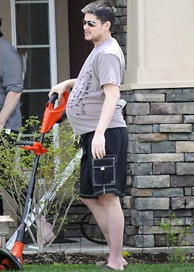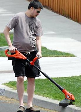 留著胡子的他盡管懷孕,仍堅(jiān)持勞動(dòng),修整家里的草坪。
