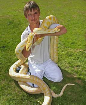 英國男子帶12英尺長巨蟒公園散步引發(fā)恐慌(圖)