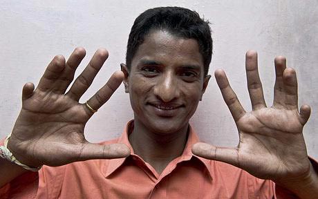 印度一名男子先天畸形,長(zhǎng)有12個(gè)手指和14個(gè)腳趾,這個(gè)數(shù)字打破了此前同樣是一名印度人創(chuàng)造的長(zhǎng)有12個(gè)手指和13個(gè)腳趾的世界紀(jì)錄。