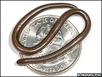 這種蛇全長(zhǎng)只有10厘米,厚度象一根寬面條。