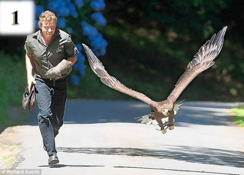 白尾海雕九十年代初期在英國絕跡,不過在啟動(dòng)重新引進(jìn)項(xiàng)目后,蘇格蘭地區(qū)已有一些白尾海雕。這只名為埃維的白尾海雕是在比利時(shí)人工飼養(yǎng)的,“她”兩歲的時(shí)候來到亨吉斯在達(dá)特穆爾的養(yǎng)鷹場(chǎng)。養(yǎng)鷹場(chǎng)的所有鳥都要經(jīng)常放飛鍛練,但亨吉斯也采取了一些措施以確保它們獲得一些“玩樂時(shí)間”。