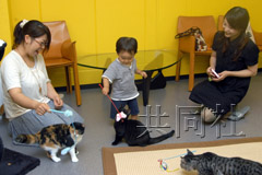 中新網(wǎng)9月11日電 最近東京陸續(xù)出現(xiàn)一種可以一邊飲茶一邊同貓玩耍的“貓咖啡館”。城市里的貓?jiān)诓粩鄿p少,從貓身上尋求安慰的人卻越來(lái)越多,高需求似乎在催生一項(xiàng)新的服務(wù)。
