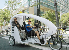 中新網(wǎng)9月14日電 最近東京街頭出現(xiàn)了一種速度快于步行,但又比自行車稍慢的德國產(chǎn)三輪出租車“Velotaxi”。據(jù)日本共同社報道,乘坐這種出租車可以通過從未體驗過的行駛速度瀏覽東京街景,很受外國游客的歡迎。