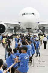 家長(zhǎng)們加入進(jìn)來(lái)后機(jī)體才稍稍移動(dòng)了數(shù)米,大家頓時(shí)擊掌歡呼。來(lái)自千葉市的小學(xué)二年級(jí)學(xué)生堀江昌大(8歲)睜大眼睛說(shuō),“手很痛,看到飛機(jī)真的動(dòng)了大吃一驚”。