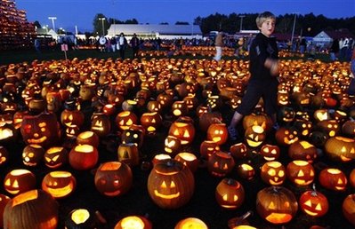 中新網(wǎng)10月6日電 綜合報(bào)道,美國緬因州坎伯蘭10月4日舉行盛大的南瓜節(jié)。人們紛紛制作各種精致的南瓜燈,試圖打破吉尼斯紀(jì)錄。