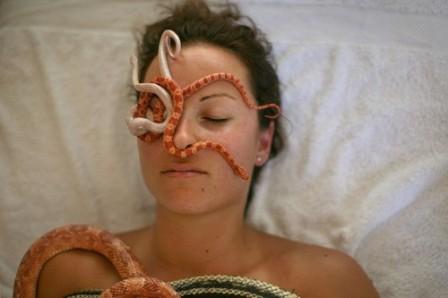 當(dāng)然,這些蛇都是無毒的。目前,巴拉克用大蛇做深度按摩,而小蛇則用于輕按摩。