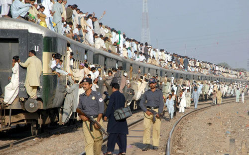 巴基斯坦木爾坦,幾十萬來自巴全國得遜尼派穆斯林參加當(dāng)?shù)氐囊粋(gè)為期三天的宗教聚會(huì)后乘火車返鄉(xiāng)。