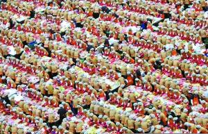 據(jù)韓國(guó)媒體報(bào)道,當(dāng)天約有2200名來(lái)自韓國(guó)和其他國(guó)家的志愿者聚集在首爾廣場(chǎng),共腌制了143噸泡菜,花費(fèi)了約5.8萬(wàn)棵卷心菜。雖然吉尼斯世界紀(jì)錄里并沒(méi)有“腌制泡菜”這一項(xiàng)目,但活動(dòng)組織方稱(chēng),與韓國(guó)多個(gè)集體腌制泡菜的活動(dòng)相比,這次活動(dòng)成果最為豐富。
