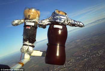 日前,一群英國學(xué)生將四只泰迪熊成功送到太空中,玩了一把“玩具熊太空行走”。