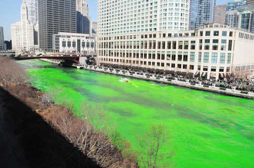 中新網(wǎng)3月16日電 據(jù)新加坡《聯(lián)合早報(bào)》報(bào)道,日前在美國(guó)芝加哥,流經(jīng)市中心的芝加哥河被可食色素染成綠色。作為慶祝圣帕特里克節(jié)的一項(xiàng)主要內(nèi)容,從1962年開(kāi)始每年都有數(shù)十萬(wàn)芝加哥市民和游客聚在河兩岸觀看“染綠”河水的活動(dòng)。