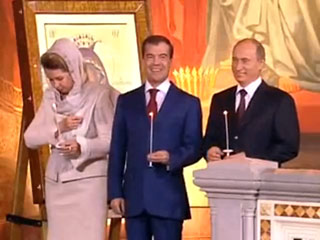 據俄羅斯新聞網報道,俄總統(tǒng)梅德韋杰夫和總理普京20日出席了在莫斯科救世主大教堂舉行的復活節(jié)祈禱儀式。然而,負責轉播節(jié)目解說的主持人在交代出場人物時將梅德韋杰夫和普京的頭銜混淆互換,這樣的口誤讓收看節(jié)目的觀眾忍俊不禁。