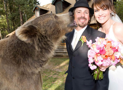 中新網(wǎng)4月29日電 一般說(shuō)來(lái),大多數(shù)喜歡動(dòng)物的人都會(huì)選擇貓或是狗這樣溫順的小動(dòng)物作為自己的忠實(shí)伙伴,然而,有的人在這個(gè)問(wèn)題上似乎要前衛(wèi)得多。據(jù)英國(guó)《每日郵報(bào)》28日?qǐng)?bào)道,美國(guó)一名男子多年以來(lái)和一只800磅(約363公斤)的大灰熊形影不離,甚至在他結(jié)婚的時(shí)候,大灰熊還做了伴郎。