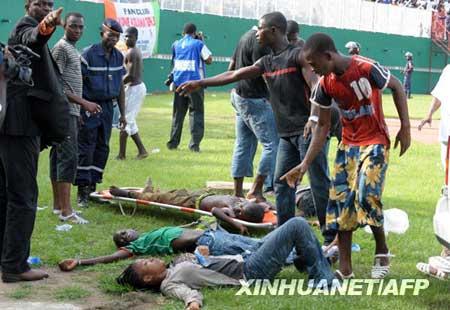 這場(chǎng)比賽是在阿比讓的烏弗埃-博瓦尼體育場(chǎng)進(jìn)行的,共有近5萬名觀眾在現(xiàn)場(chǎng)觀看了比賽。有消息說,引發(fā)這一意外事件的原因是體育場(chǎng)的一面墻突然坍塌,致使附近的觀眾在恐慌中奪路逃離現(xiàn)場(chǎng)時(shí)發(fā)生了踩踏事件。據(jù)介紹,目前這個(gè)體育場(chǎng)的周邊已經(jīng)恢復(fù)了平靜。