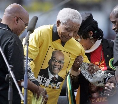 而曼德拉的到場,提高了祖馬的競選聲勢。曼德拉發(fā)表了提前錄制的講話。