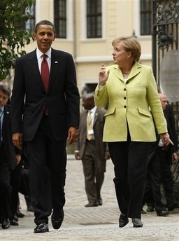奧巴馬與默克爾的會談還討論了全球金融危機。6日他將到法國參加紀念聯(lián)軍登陸諾曼底65周年的活動。