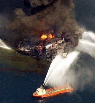 事故發(fā)生在當(dāng)?shù)貢r間20日晚10日點左右,一個距離墨西哥灣80公里的半潛鉆井平臺起火爆炸,一些被爆炸和大火嚇壞了的工人紛紛跳下30米高的鉆塔逃生,一些人還乘坐上了救生筏。