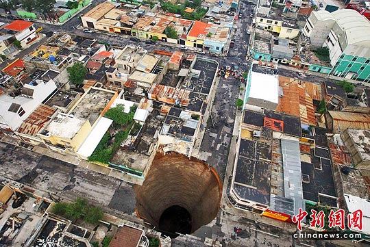此外,受連場(chǎng)暴雨影響,危地馬拉城一處出現(xiàn)地面下陷,形成一個(gè)深60米、直徑30米的地洞。據(jù)報(bào)道,這個(gè)巨大地洞吞噬了一幢3層高大廈,1人死亡。