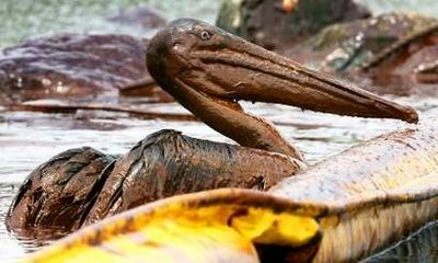 其中一幀照片顯示一只鵜鶘在油污中掙扎,呼吸困難,原油從它的羽毛上滴下,情景好像恐怖科幻片。這張照片充分反映了漏油事故對野生動物的災(zāi)難性影響。
