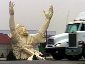 這座大型雕像建于2004年,使用木材及塑料制成,一直是當(dāng)?shù)氐闹貥?biāo)。教會(huì)表示,雕像將會(huì)重建,而且會(huì)使用防火材料。