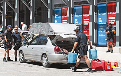 中新網(wǎng)6月26日電 據(jù)香港《文匯報》26日報道,G20峰會前夕,各成員國領袖陸續(xù)抵,加拿大警方在多倫多市采取極嚴密保安措施。連日來已有3名可疑人士被捕,其中1名53歲男子前日駕車經(jīng)過峰會會場禁區(qū),由于車頂綁著1個鋼制儲物箱,模樣怪異,引起警方注意。警察攔車檢查,赫然發(fā)現(xiàn)車上有十字弓、電鋸、棒球棍、大錘外,還有多種不明液體。警方?jīng)]收這批物品,并將他拘捕。