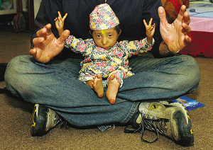 卡根德拉出生時(shí)只有600克重。現(xiàn)在,他也只有4.5公斤重,身高也只有約61厘米。他的母親塔納說(shuō),他剛生下來(lái)時(shí)“就像一只剛從蛋殼里孵出來(lái)的小雞!笨ǜ吕母赣H魯普說(shuō),兒子和家人吃一樣的食物,但就是長(zhǎng)不大,“直到8歲時(shí)才能獨(dú)立行走”。去年,家人發(fā)現(xiàn)卡根德拉停止長(zhǎng)個(gè)兒。醫(yī)生至今無(wú)法對(duì)卡根德拉無(wú)法長(zhǎng)大的原因給出解釋?zhuān)聹y(cè)這可能與腦垂體機(jī)能失常有關(guān)。
