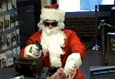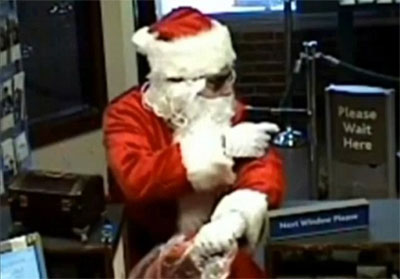 中新網(wǎng)12月24日電 據(jù)英國(guó)媒體報(bào)道,美國(guó)一名男子打扮成慈祥的圣誕老人模樣背著一個(gè)大麻袋走入銀行,正在辦理業(yè)務(wù)的顧客一陣欣喜,以為他要為大家發(fā)禮物,沒(méi)想到這個(gè)“圣誕老人”竟然掏出一把槍,大喊一聲:搶劫了!