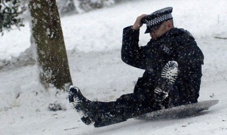 中新網(wǎng)1月7日電 綜合英國(guó)媒體報(bào)道,英國(guó)的連日暴雪天氣為英國(guó)警方和普通民眾都帶來了不少麻煩,許多民眾因被他人用雪球擊中而向警方投訴。但警方卻表示大雪也能帶來好處:他們沿著一名逃犯在雪地中新留下的足跡成功將其抓捕。而且,倫敦警察們還坐著自己“心愛”的武器——防暴盾牌從山坡上往下滑,以此玩樂。