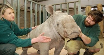 據(jù)報(bào)道,2009年12月21日,英國愛丁堡北部的布萊爾德拉蒙德野生動(dòng)物園(Blair Drummond Safari Park)接到一個(gè)匿名電話,電話那端的女子表示,自己是塞浦路斯人,在通過網(wǎng)絡(luò)攝像頭看動(dòng)物園的實(shí)時(shí)拍攝情況時(shí)發(fā)現(xiàn),一只懷孕已經(jīng)16個(gè)月的犀牛媽媽即將臨盆。