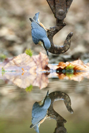 中新網(wǎng)3月23日電 據(jù)英國《每日郵報》22日報道,一名英國攝影師在自己建造的掩體下呆了一個月,只為了拍攝雀鳥臨水嬉戲的照片。功夫不負有心人,他拍到了一只五子雀(Nuthatch)水中照影自憐的完美照片,十分有趣。