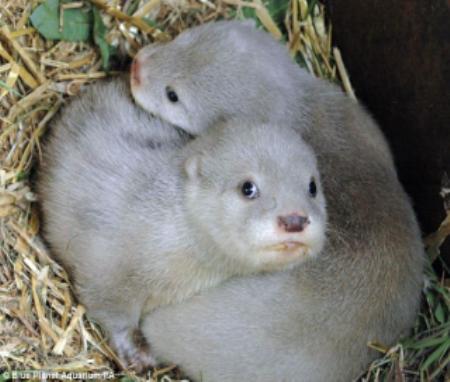 英國(guó)柴郡藍(lán)色星球水族館3月底誕生兩只水獺寶寶,但是它們的皮毛呈現(xiàn)白色,讓人不禁懷疑它們是否患有白化癥。