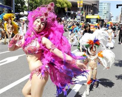 中新網(wǎng)5月17日電 據(jù)日本新聞網(wǎng)報道,日本著名的港口城市神戶市16日舉行了“神戶祭”(旅游文化節(jié))的最后狂歡。1萬多名市民穿著比基尼走上街頭,跳起了熱烈的桑巴舞。