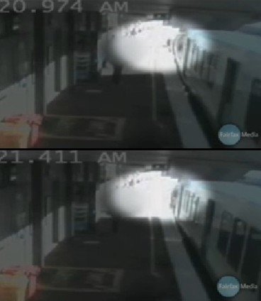 站臺(tái)上,嬰兒和祖母以及乘客們都被這一幕驚呆了,目瞪口呆,過了一會(huì)兒才知道朝站臺(tái)邊緣跑去。