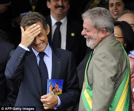 法國(guó)總統(tǒng)薩科齊6日至7日對(duì)巴西進(jìn)行國(guó)事訪問(wèn),并應(yīng)邀出席了巴西獨(dú)立節(jié)的慶祝及閱兵活動(dòng)。閱兵活動(dòng)中,薩科齊偷接電話被媒體逮了個(gè)正著。試圖用宣傳單擋住自己在打電話的舉動(dòng),可謂是“欲蓋彌彰”。
