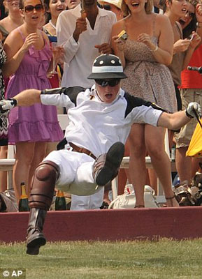 美國(guó)當(dāng)?shù)貢r(shí)間27日,哈里王子來(lái)到紐約總督島參加慈善馬球比賽,為非洲貧困國(guó)家的艾滋病孤兒們籌集資金。當(dāng)?shù)鼐用癖鞠胍欢糜?guó)王子的賽馬英姿卻額外收獲了王子落馬時(shí)的窘相。哈里王子跌落后又在地上翻了幾個(gè)跟頭,然后迅速起身,看起來(lái)身體并無(wú)大礙。但他面露羞澀,對(duì)這一跤頗感尷尬。