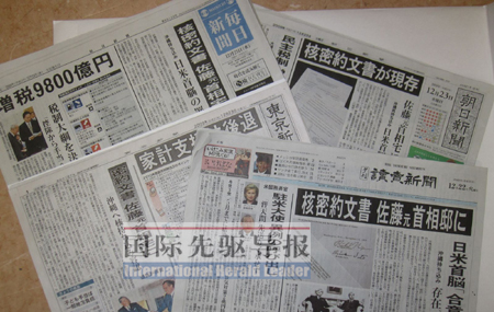 此次“備忘錄”文件直接證實了“沖繩核密約”的存在,這在很大程度上也提高了其他3個密約存在的可能性。因此,“備忘錄”一出現(xiàn),頓時成為日本媒體關(guān)注的焦點。繼《讀賣新聞》拔得頭籌之后,23日的日本各大報紙頭版,都對密約問題進(jìn)行了大篇幅的跟蹤報道!∽悦顸h執(zhí)政時,對上述密約的存在一概予以否認(rèn)。民主黨上臺后,新外相岡田克也已經(jīng)組織了專門的調(diào)查項目,在外務(wù)省檔案中查證是否存在密約。但是,之前關(guān)于“沖繩核密約”的調(diào)查結(jié)果是:“外務(wù)省沒有保存這份文件。”對此,日本《每日新聞》的解讀是:當(dāng)時圍繞密約的外交行動并沒有通過外務(wù)省當(dāng)局,而是委托國際政治學(xué)者、京都產(chǎn)業(yè)大學(xué)教授若泉敬個人交涉的。因此外務(wù)省沒有記錄亦屬正常。而佐藤信二也透露,在當(dāng)年發(fā)現(xiàn)密約之后,他曾經(jīng)找到外務(wù)省的一些官僚,希望這一文件能夠由外務(wù)省外交史料館保存,但對方卻說:“這不是官方文件,而是個人文件。”
