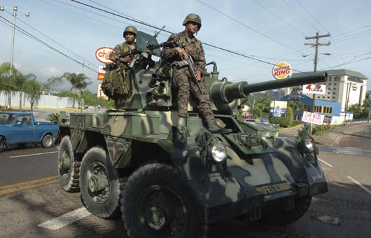 同時,塞拉亞被抓走3個小時后,洪都拉斯軍方已經(jīng)完全控制了首都特古西加爾巴的主要街道,同時切斷了首都和外界的交通往來。據(jù)悉,軍方出動了裝甲車和直升機,在街道和空中進行偵察。大量軍隊在總統(tǒng)府、議會大廈和最高法院等重要地點集結(jié)。除了上述重要地點外,絕大多數(shù)街道上不見一人,商鋪大門緊閉。