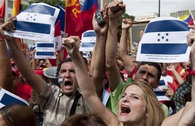 中新網(wǎng)6月30日電 據(jù)路透社等媒體報(bào)道,洪都拉斯幾個(gè)主要城市29日爆發(fā)大規(guī)模游行示威,民眾反對(duì)軍事政變,呼吁軍人撤出總統(tǒng)府,要求議會(huì)議長(zhǎng)羅伯托·米切萊蒂停止欺騙民眾,并希望總統(tǒng)塞拉亞盡快回國(guó)掌權(quán)。