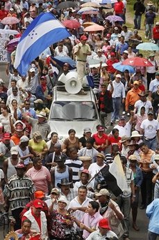 本周一,塞拉亞意圖回國復(fù)職,大批支持者前往機場迎接和阻擋的軍警爆發(fā)沖突,19歲的青年曼西亞被軍人射殺,在曼西亞家屬的請求下,藏匿了十天的卡絲特蘿決定出面。