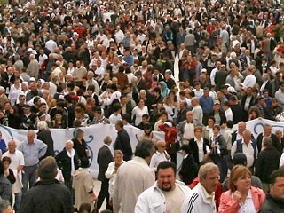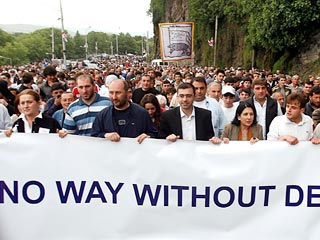5月26日格魯吉亞反對(duì)派在首都第比利斯舉行大規(guī)模游行示威活動(dòng),從全國(guó)各地趕來(lái)的約6.5萬(wàn)名支持者參加。為了迫使總統(tǒng)薩卡什維利下臺(tái),反對(duì)派宣布準(zhǔn)備采取激進(jìn)措施,封鎖鐵路、國(guó)道和機(jī)場(chǎng)。反對(duì)派“為了統(tǒng)一的格魯吉亞”運(yùn)動(dòng)領(lǐng)袖別謝利婭在議會(huì)大廈前的集會(huì)上宣布:“今天我們將封鎖鐵道,從今天起我們將開(kāi)始最激進(jìn)的行動(dòng)。”反對(duì)派保守黨領(lǐng)袖濟(jì)濟(jì)古里宣布:“我們計(jì)劃首先和平封鎖鐵路,然后是機(jī)場(chǎng)。我們的行動(dòng)將是和平的,但極其激進(jìn)!狈磳(duì)派“格魯吉亞道路”黨領(lǐng)袖祖拉比什維利宣布:“我們將用汽車封鎖中央(公路)干線,然后步行去封鎖鐵路。”