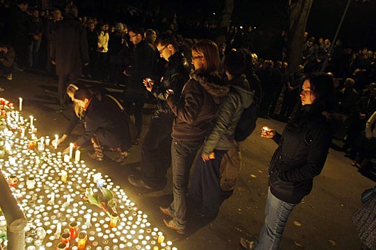 據(jù)學(xué)校同學(xué)和老師介紹,做案人名叫阿科什,性格內(nèi)向封閉、不愛(ài)與他人交往、經(jīng)常行為怪異、情緒易激動(dòng),可能患有精神疾病。事發(fā)時(shí),阿科什與其它20名同學(xué)一起在實(shí)驗(yàn)室做試驗(yàn),由于他莫明其妙地說(shuō)話和敲打桌子,人們讓他離開(kāi)。阿科什一言不發(fā)起身走開(kāi),但稍后回來(lái)時(shí)持著一把手槍?zhuān)⒊覂?nèi)開(kāi)槍射擊。他使用的是一把子彈直徑為9毫米的原捷克斯洛伐克產(chǎn)帕拉貝倫手槍?zhuān)龊Φ耐瑢W(xué)身中五槍當(dāng)場(chǎng)死亡。阿科什2007年開(kāi)始學(xué)習(xí)射擊,擁有持槍許可證,為佩奇射擊俱樂(lè)部會(huì)員,但他此次行兇的原因仍在調(diào)查中。