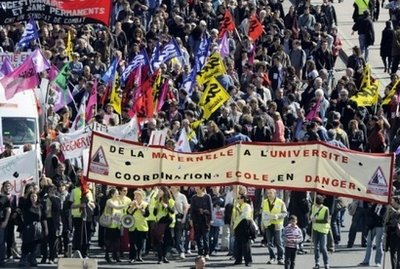 中新網(wǎng)3月24日電 據(jù)香港《大公報(bào)》援引外電報(bào)道,法國(guó)的鐵路工人、教師及公務(wù)員二十三日舉行全國(guó)罷工,令當(dāng)天的運(yùn)輸、教育等方面的公共服務(wù)受阻。工會(huì)希望他們的行動(dòng)能將總統(tǒng)薩科齊的改革計(jì)劃叫停。