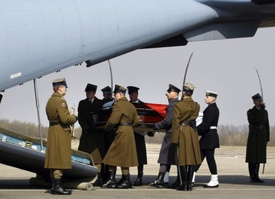 據(jù)俄羅斯媒體報道,運載波蘭總統(tǒng)遺體的波蘭空軍運輸機(jī)從斯摩棱斯克啟程前往華沙?J斯基夫人瑪麗亞的遺體稍后也將運往華沙。
