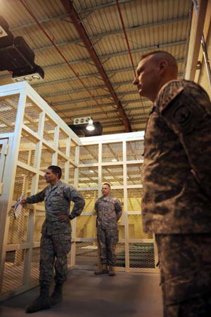 目前,巴格拉姆基地多數(shù)的恐怖疑犯都被囚于一個帳篷拘留所中,但在本月內將會有六百四十名囚犯得以遷往環(huán)境較佳的帕爾旺拘留所。掌管這座“新關塔那摩”的美軍律師馬克.馬丁斯指,關塔那摩灣監(jiān)獄和伊拉克的阿布格里卜監(jiān)獄都被指違反法律,但帕爾旺拘留所將會被視為一座合理對待囚犯的監(jiān)獄,因為它將會秉持遵守法治和合理程序的兩大原則,并將致力協(xié)助囚犯在出獄后重新融入社會。他說這是美國在對待恐怖疑犯上的“真正進步”,而監(jiān)獄的運作將會具有透明度。