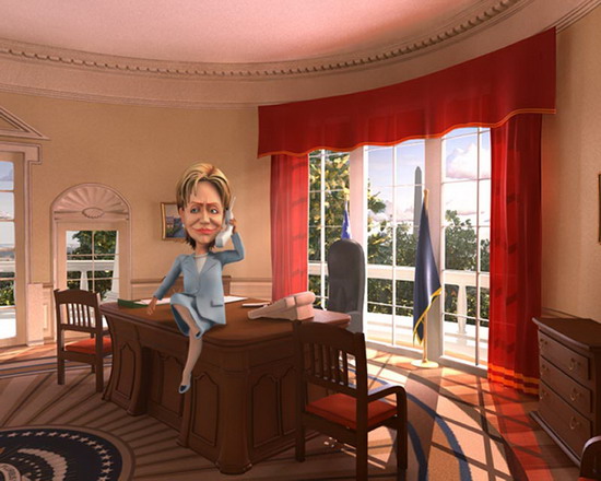 這段卡通片名為《動畫人性》(Cartoon Personalities),是于15日在俄羅斯國家電視臺第一頻道播出的。這段動畫生動地展現(xiàn)了多位政治人物和明星的形象。片中,美國國務(wù)卿希拉里·克林頓一身天藍(lán)色套裝打扮,和平日里的著裝非常相似。不過希拉里卻是坐在白宮橢圓形辦公室的桌子上,一邊翹著二郎腿一邊打電話,面部表情還很嚴(yán)肅。